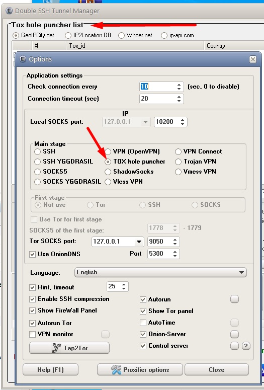 Работа с протоколами Socks5,SSH,TOR,ShadowSocks, Xray Vless, Trojan, OpenVPN, Yggdrasil, VpnConnect, wireguard, PPTP, ToxHole (Протокол обхода NAT)