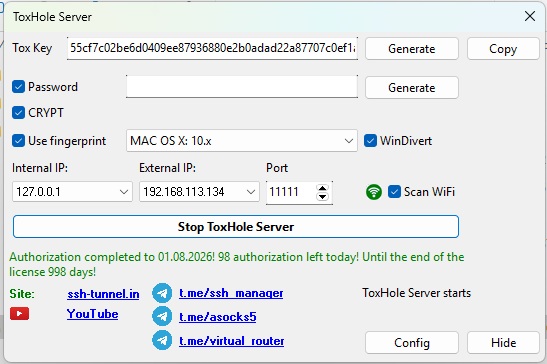 Работа с протоколами Socks5,SSH,TOR,ShadowSocks, Xray Vless, Trojan, OpenVPN, Yggdrasil, VpnConnect, wireguard, PPTP, ToxHole (Протокол обхода NAT)